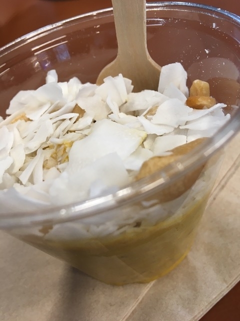 パリの空港で買ったんです。結構ね、食べるのがしんどかった(笑)マンゴーの味しないじゃん?っていうか、味ないじゃん?5ユーロ弱すんのよ。もう一度言う、味ないじゃん?あ、EXKIっていう自然派なカフェ。そして、ついでいうと、この木のスプーン、見た目は可愛いし、なんと言っても環境に優しい。が、しかし、しかしだ。これで食べると美味しくない度合いが上がります。きっと。割り箸とか、アイスのスプーンが木製なのは違和感ないのにな、なんでだろう。
