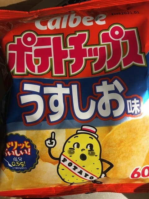 「カルビーポテトチップスうすしお味(お菓子総選挙でさ1位だし)」