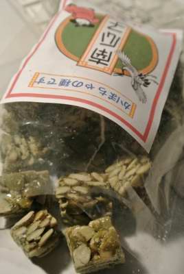 これ、「みなみうりこ」と読むらしい。そう、黒ごまのとピーナッツのとコレと3つ買ったのだ。そして一番楽しみにしてたのがこのかぼちゃの種なのだ。が、しかし、おや?思ったよりも青臭い。っていうか、かぼちゃの種の美というのは…青臭かったのか?ブロックになってるからよけいに感じるのか?「わーい、かぼちゃのたねばっかり~」と思ってかったのだが、適度にピーナッツの混ざってるヤツの方が食べ慣れてる感があったな…慣れってすごいな。