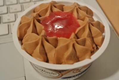 2016-04-11 シュプールモンシェール 紅茶&ストロベリー アイス #菓子、デザート 人と接するのって、やっぱめんどくさい? 例えば,家の外に人の居る気配がするとタイミングをずらして出ようとする…うん。 夜ですね、室温15.7度、湿度49%。寒い。っていうか風が冷たすぎる!手袋も耳あてもマストじゃん。っていうか油断したらまじめに風邪を引きそうだ。ていうか、干した洗濯物が散乱している家があってものすごくお気の毒になってしまったよ。そうそう、いか天大王も食べちゃったし、やっぱしさきイカ天買おうとカルディーに行ったら無かった。手の中の400円が・・ 『シュプールモンシェール 紅茶&ストロベリー』 これ、ラクトアイスなのよ。アイスミルクですらないのか!とちょっとおののいたわ。だがね、けっこう美味しいのよ。ミルクティアイスに真ん中の苺ジュレ、下半分はバニラアイスでクッキーも所々埋まってる。非常に良く出来てるな、と。ただ、今食べてものすごく身体が冷えた(笑)で、気を取り直してミルクティを入れたのだが、このアイス程香り高く無い(笑)