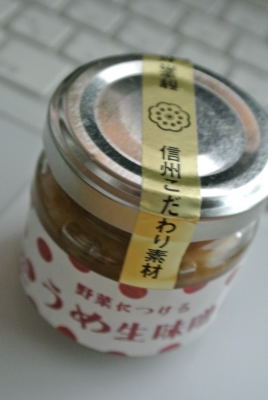 2017-08-13 うめ生味噌 長野のおやつ #菓子、デザート 人と接するのって、やっぱめんどくさい? そんなこともない、うん。 深夜ですね、室温27度、湿度76%。心地よい気温。うたた寝をしてしまい風呂に行きそびれてしまった。今日久々に渋谷、っていうか公園通りを通ったのだが、パルコってもう無いのね、あらららら、で、ブックファーストがビレバンになってた。そしてニトリが出来てた。あらら。 『うめ生味噌』 や、うめ干し&白味噌(その他もろもろ)なのだがね、思った以上に美味しかった。野菜につけるだけじゃなく蒸し鶏とかね、いいかんじなんです。
